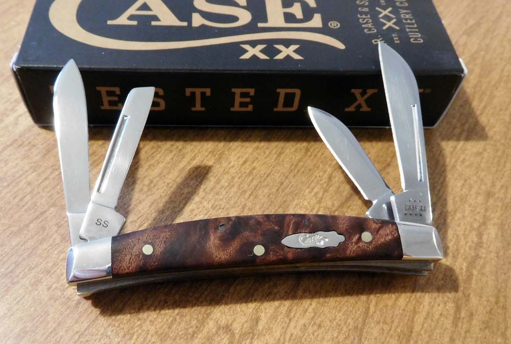 BROWN MAPLE BURL HANDLE 4 BLADE SMALL CONGRESS, 7468 SS. 3 1/8" CLOSED.