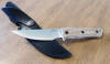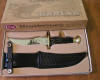 BUFFALO HORN HANDLE KODIAK, 10 1/2" OVERALL. 5 3/4" STAINLESS STEEL BLADE. BLACK LEATHER SHEATH.