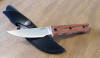 ORANGE PEEL SMOOTH HARDWOOD COMPOSITE HANDLE HUNTER, FB1012 420 HC SS. 9 1/4" OVERALL. 4 3/8" 420 STAINLESS STEEL BLADE. BLACK LEATHER SHEATH.