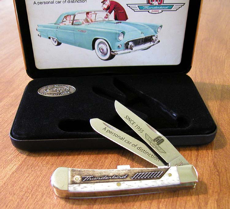 NATURAL SMOOTH BONE HANDLE 60TH ANNIVERSARY FORD THUNDERBIRD 2 BLADE TRAPPER, 6254