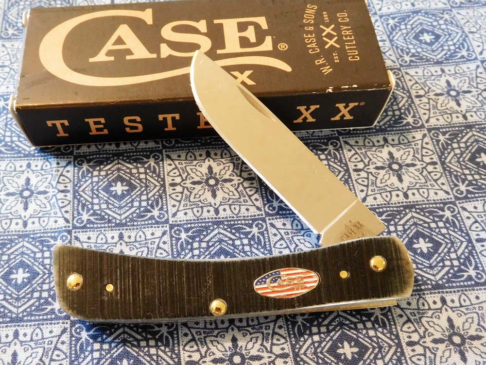 CASE XX OVAL AMERICAN FLAG SHIELD. TRU-SHARP STAINLESS STEEL CLIP, SPEY, AND SHEEPSFOOT