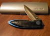 SKY WALKER WITH 2 7/8" 440C BLADE. 4 1/8" CLOSED. BLUE TITANIUM LINERS WITH BLACK CARBON FIBER HANDLE SCALES. LINER LOCK DESIGN.