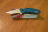 2 3/8" 420HC PLAIN EDGE BLADE. 3 1/2" CLOSED. BLUE ALUMINUM HANDLES WITH