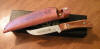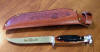 OAK HANDLE HUNTER WITH 4" D-2 TOOL STEEL CLIP POINT BLADE. 8 3/8" OVERALL. LEATHER SHEATH.