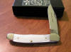 SHEFFIELD JIGGED PEARL SINGLE BLADE SMALL FOLDING HUNTER, 3 3/4" CLOSED. D-2 TOOL STEEL CLIP BLADE. LINER LOCK DESIGN.