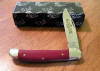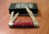 SMOOTH BLACK CHERRY 3 BLADE WHITTLER, 3 1/2" CLOSED. D-2 TOOL STEEL CLIP, COPING, AND PEN BLADES.