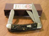 BROWN WORM GROOVE JIGGED BONE HANDLE 3 BLADE SOWBELLY STOCKMAN. 3 3/4"