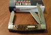 SAW CUT HANDLE 3 BLADE MEDIUM STOCKMAN, 3 3/8" CLOSED. CARBON STEEL CLIP,