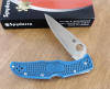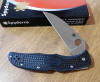 BLUE ENDURA WITH 3 1/2" VG-10 FLAT GROUND, PLAIN EDGE BLADE. 5" CLOSED.