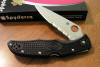ORANGE ENDURA WITH 3 1/2" VG-10 FLAT GROUND, PLAIN EDGE BLADE. 5" CLOSED.