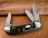 BLACK AND GREEN CELLULOID HANDLE 3 BLADE TOBACCO SOWBELLY, 3 5/8" CLOSED.