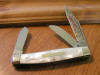 GENUINE MOTHER OF PEARL HANDLE 3 BLADE STOCKMAN, 3 3/4" CLOSED. CARBON STEEL