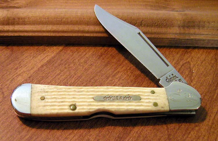 NATURAL JIGGED BONE SINGLE BLADE COPPERLOCK, 61549L SS. 4 1/4" CLOSED, USA BAR