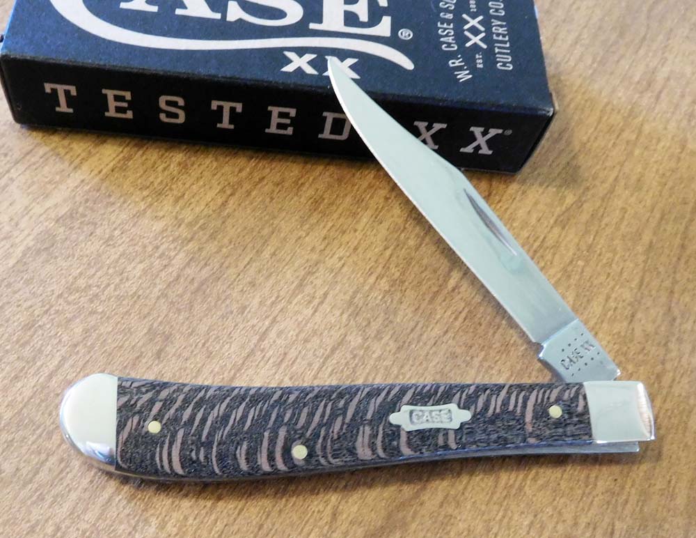 BLACK SYCAMORE WOOD HANDLE SINGLE BLADE SLIM LINE TRAPPER, 71048 SS. 4 1/8" CLOSED.