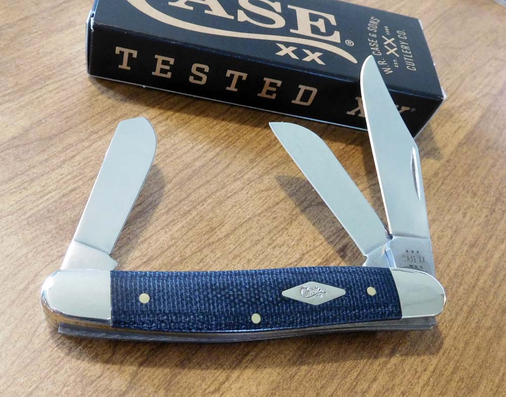BLUE DENIM SMOOTH CANVAS HANDLE 2 BLADE PEANUT, 10220 SS. 2 7/8" CLOSED.