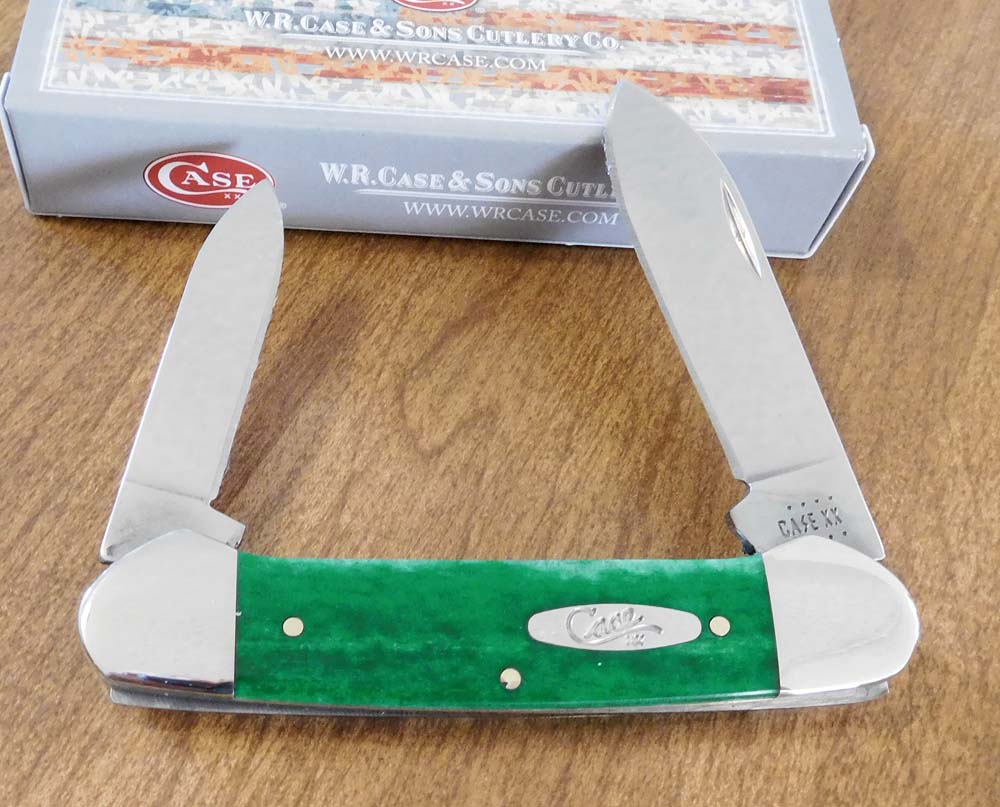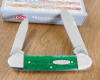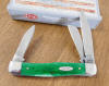 BRILLIANT GREEN SMOOTH BONE HANDLE 2 BLADE CANOE, 62131 SS. 3 5/8"