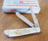 BURNT WHITE BARNBOARD JIGGED BONE HANDLE 2 BLADE MINI TRAPPER, 6207 SS.