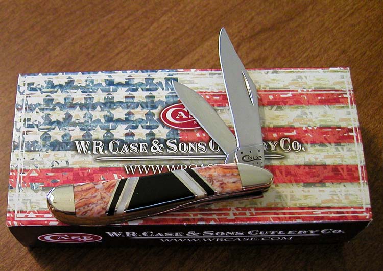 | THE HANDLES ARE LIONS PAW SCALLOP SEA SHELL ACCENTED WITH BLACK JET, NICKEL SILVER, AND MOTHER OF PEARL |