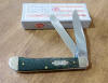GREEN ZEBRA WOOD HANDLE 2 BLADE TRAPPER, 7254 SS. 4 1/8" CLOSED. TRU-SHARP STAINLESS STEEL CLIP AND SPEY BLADES.