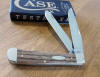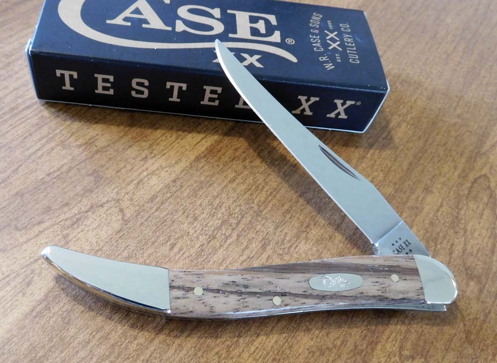 NATURAL ZEBRA WOOD HANDLE 2 BLADE TRAPPER, 7254 SS. 4 1/8" CLOSED. CASE
