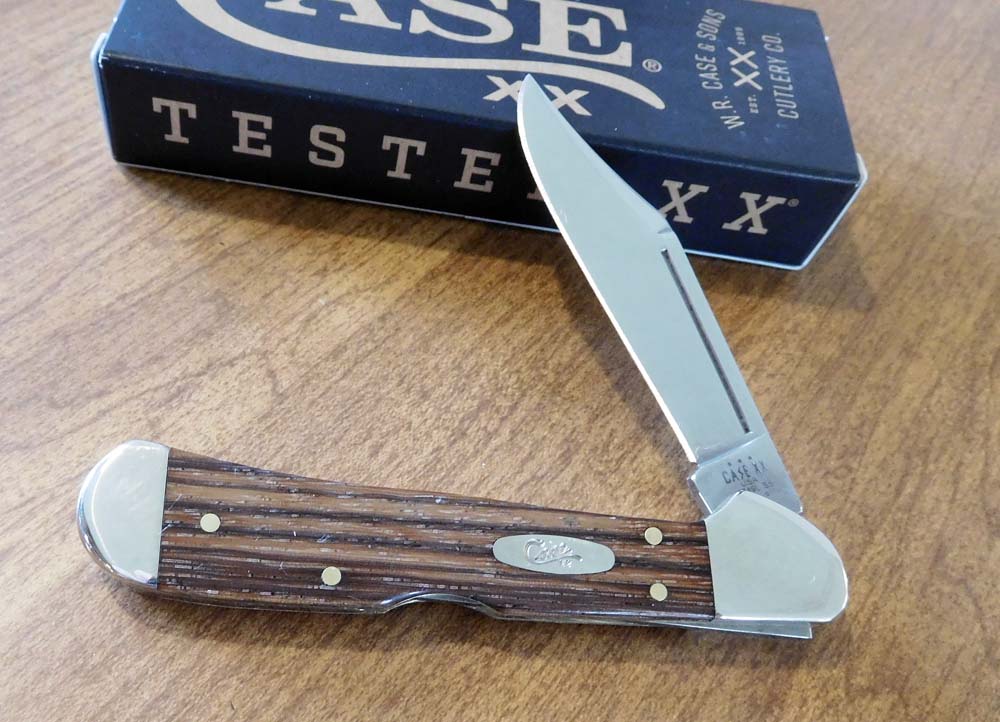 NATURAL ZEBRA WOOD HANDLE SINGLE BLADE MINI COPPERLOCK, 71749L SS. 3 5/8" CLOSED. CASE