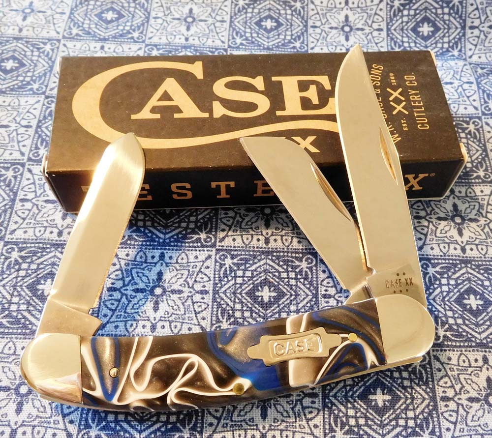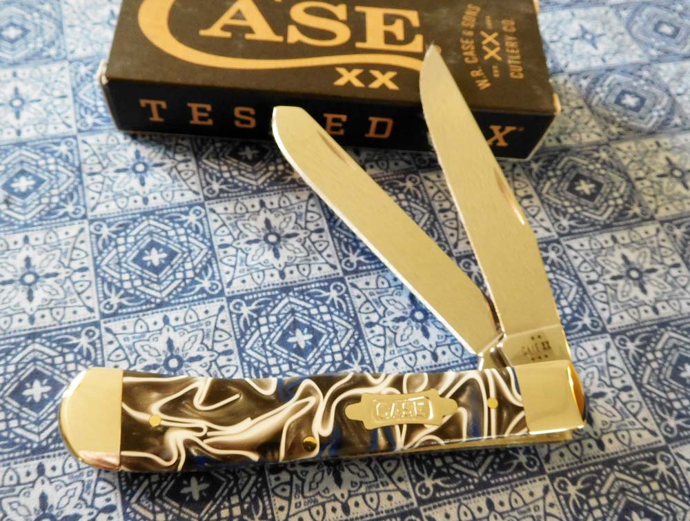 CASE BOWTIE SHIELD. TRU-SHARP STAINLESS STEEL CLIP, SPEY, AND SHEEPSFOOT BLADES.