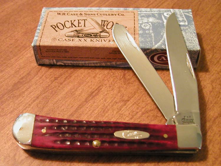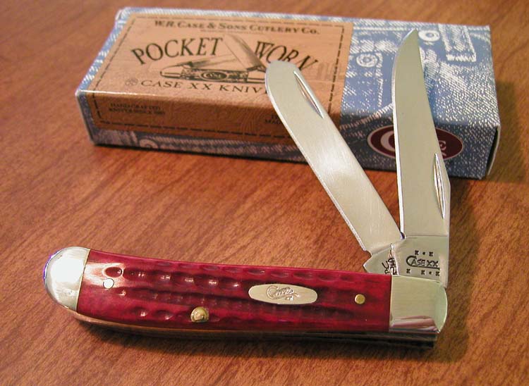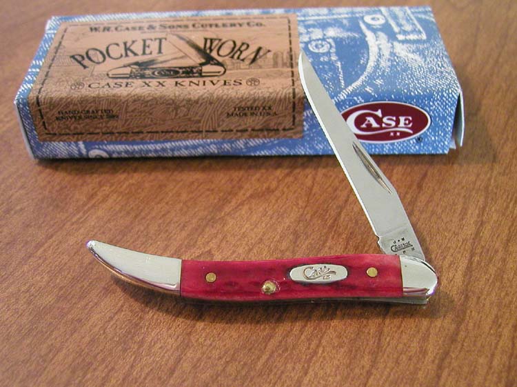 RED POCKET WORN JIGGED BONE 2 BLADE PEANUT, 6220 SS. 2 7/8" CLOSED. TRU-SHARP STAINLESS STEEL CLIP AND