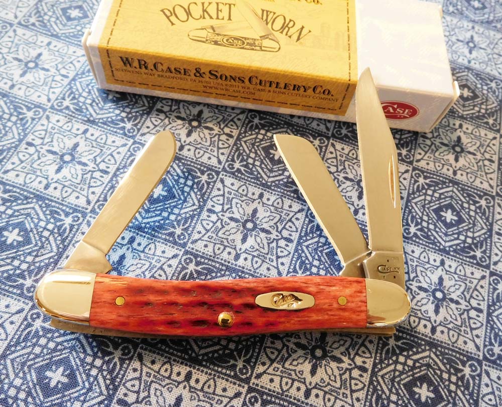 CASE RED POCKET WORN JIGGED BONE HANDLE 3 BLADE SMALL STOCKMAN, 6333 SS.