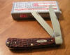 JIGGED ROSEWOOD HANDLE 2 BLADE TRAPPER, 7254 SS. 4 1/8" CLOSED. TRU-SHARP STAINLESS STEEL CLIP AND SPEY BLADES.