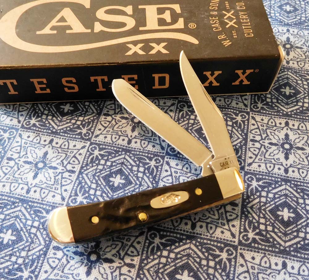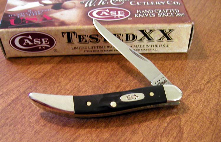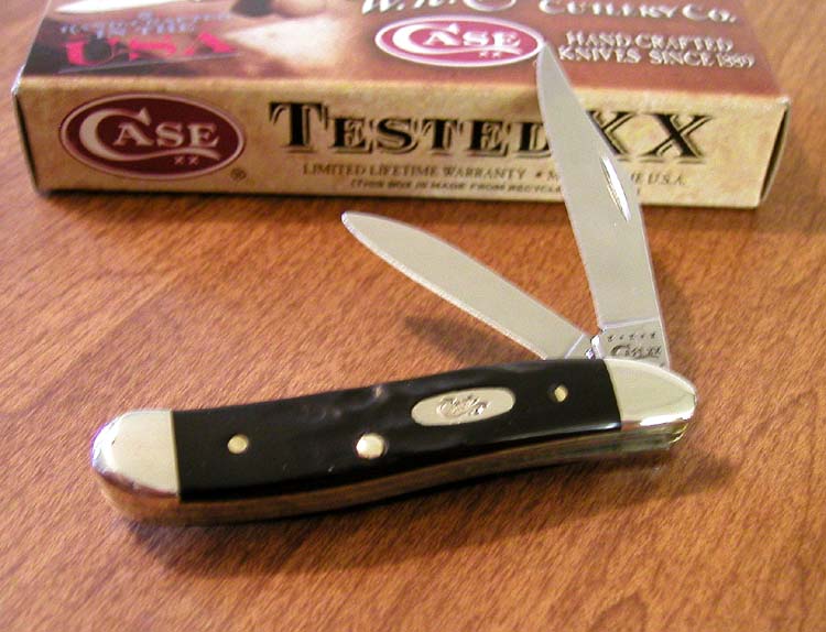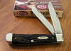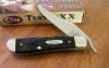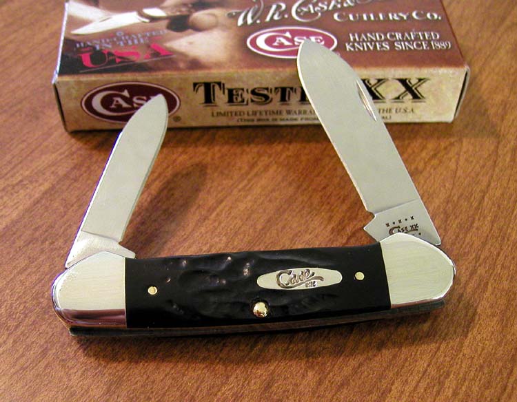 ROUGH BLACK JIGGED SYNTHETIC HANDLE 2 BLADE PEANUT, 6220 SS. 2 7/8" CLOSED. TRU-SHARP STAINLESS STEEL CLIP AND