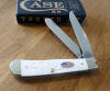 ROUGH WHITE SYNTHETIC HANDLE 2 BLADE MINI TRAPPER, 6207 SS. 3 1/2" CLOSED.