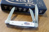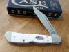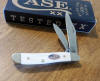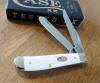 ROUGH WHITE SYNTHETIC HANDLE 2 BLADE TRAPPER, 6254 SS. 4 1/8" CLOSED.