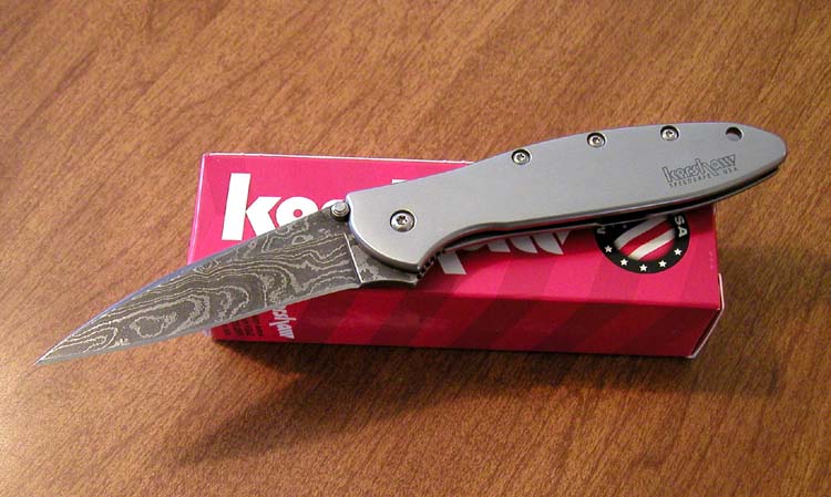 LEEK WITH 3" PLAIN EDGE DAMASCUS BLADE. 4 1/8" CLOSED. STAINLESS STEEL